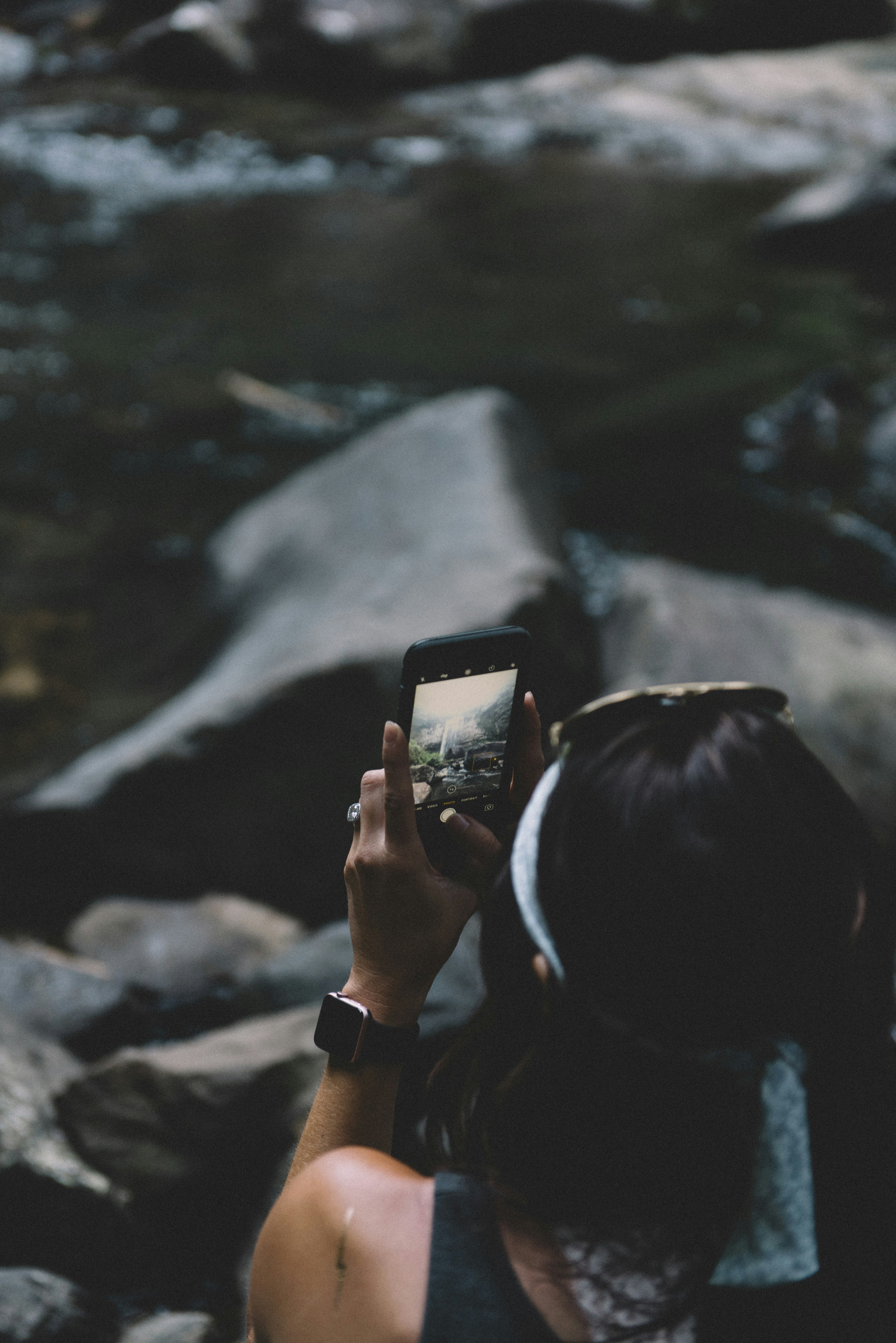 Woman holding her phone in nature